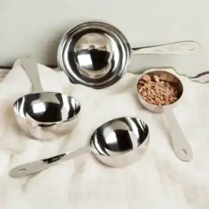 Size: 1/4 Cup, 1/3 Cup, 1/2 Cup, 1 Cup Material Content: 100% Stainless Steel Handwashing is recommended.