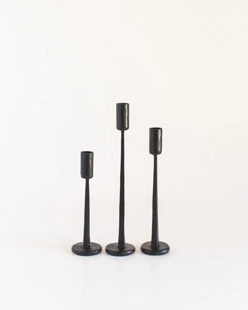 Hand-forged by skilled artisans in India, these exquisite candlesticks embody timeless craftsmanship and enduring style. Each piece features a subtly textured finish that reflects generations of traditional metalworking artistry. Designed with a sturdy, weighted base for stability, they offer both beauty and balance — the perfect statement for any setting.