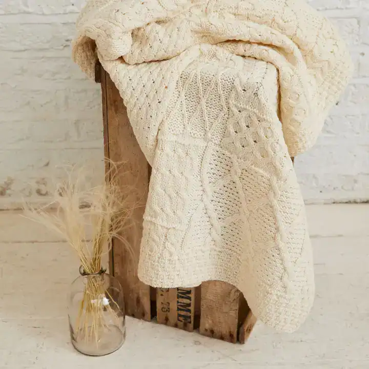 Much like Ireland’s enchanting coastlines, the 100% Merino wool, Keel Aran Patchwork Blanket tells many stories through its stitches. Showcasing a patchwork ensemble of the traditional diamond stitch, the honeycomb stitch and a variety of cable stitches, you’ll find comfort in Ireland’s colourful past with this highly textured throw. Let the Keel Aran Patchwork Blanket give your family and friends a warm Irish welcome to your home.