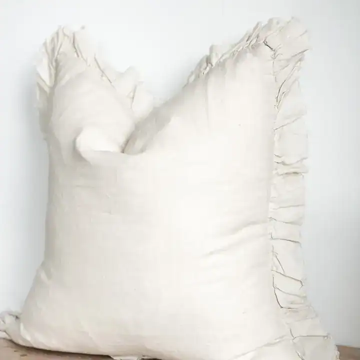 Cream Ruffled Linen Cushion Cover 45x45cm