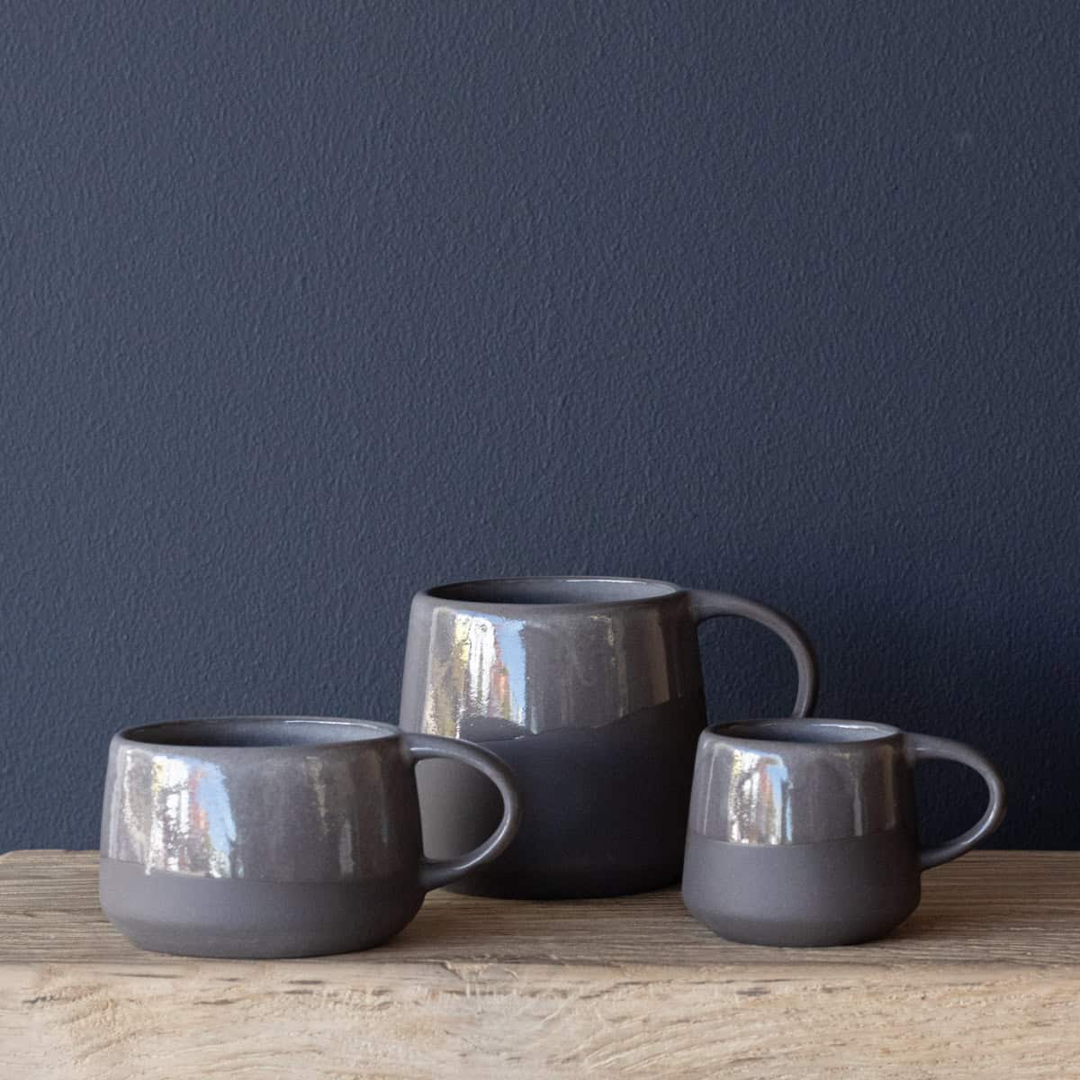 Pictured (left) with the large mug (center) and espresso cup (right).