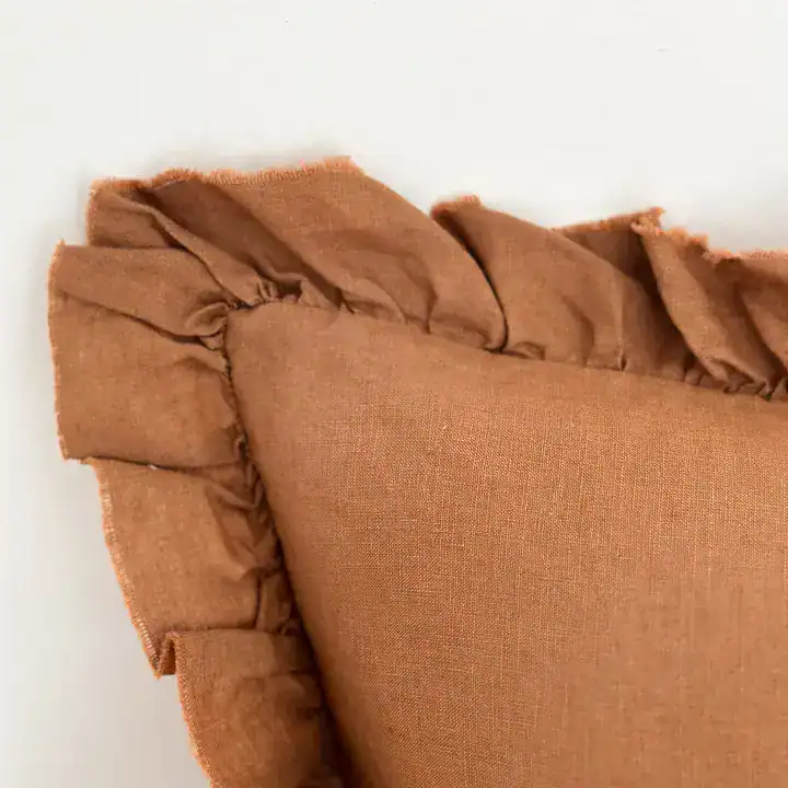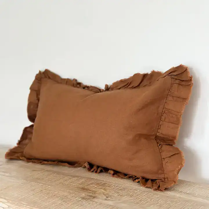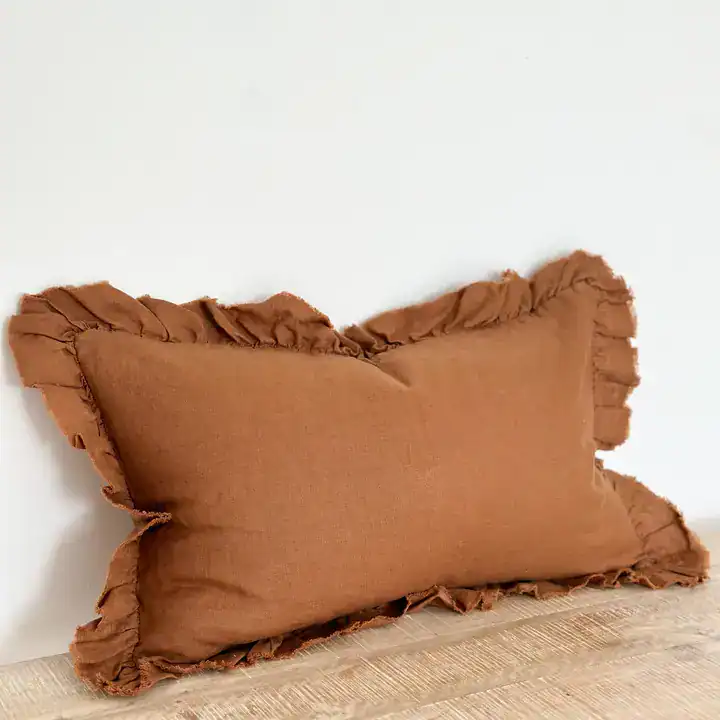 Rust Ruffled Linen Cushion Cover 50x30cm